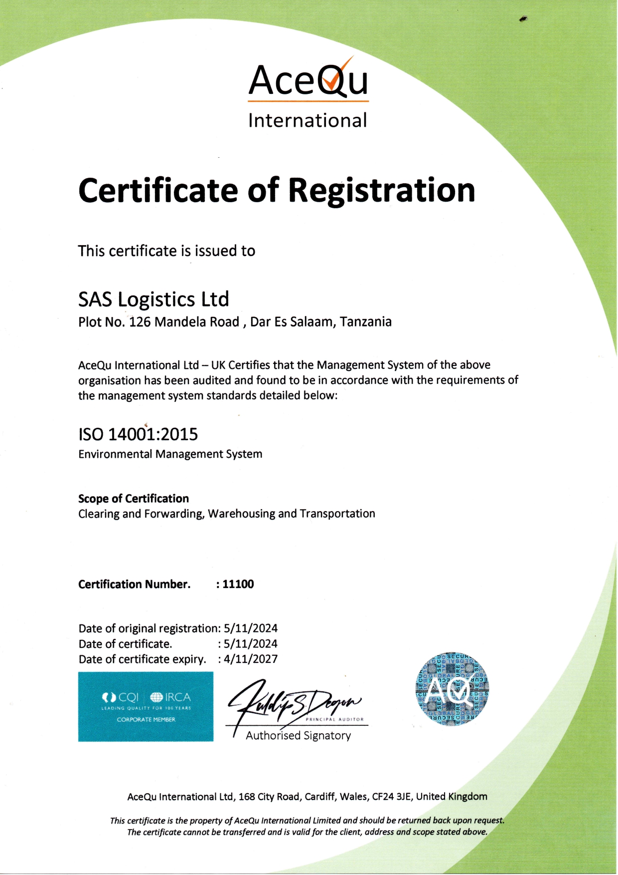 ISO 14001 Certificate
