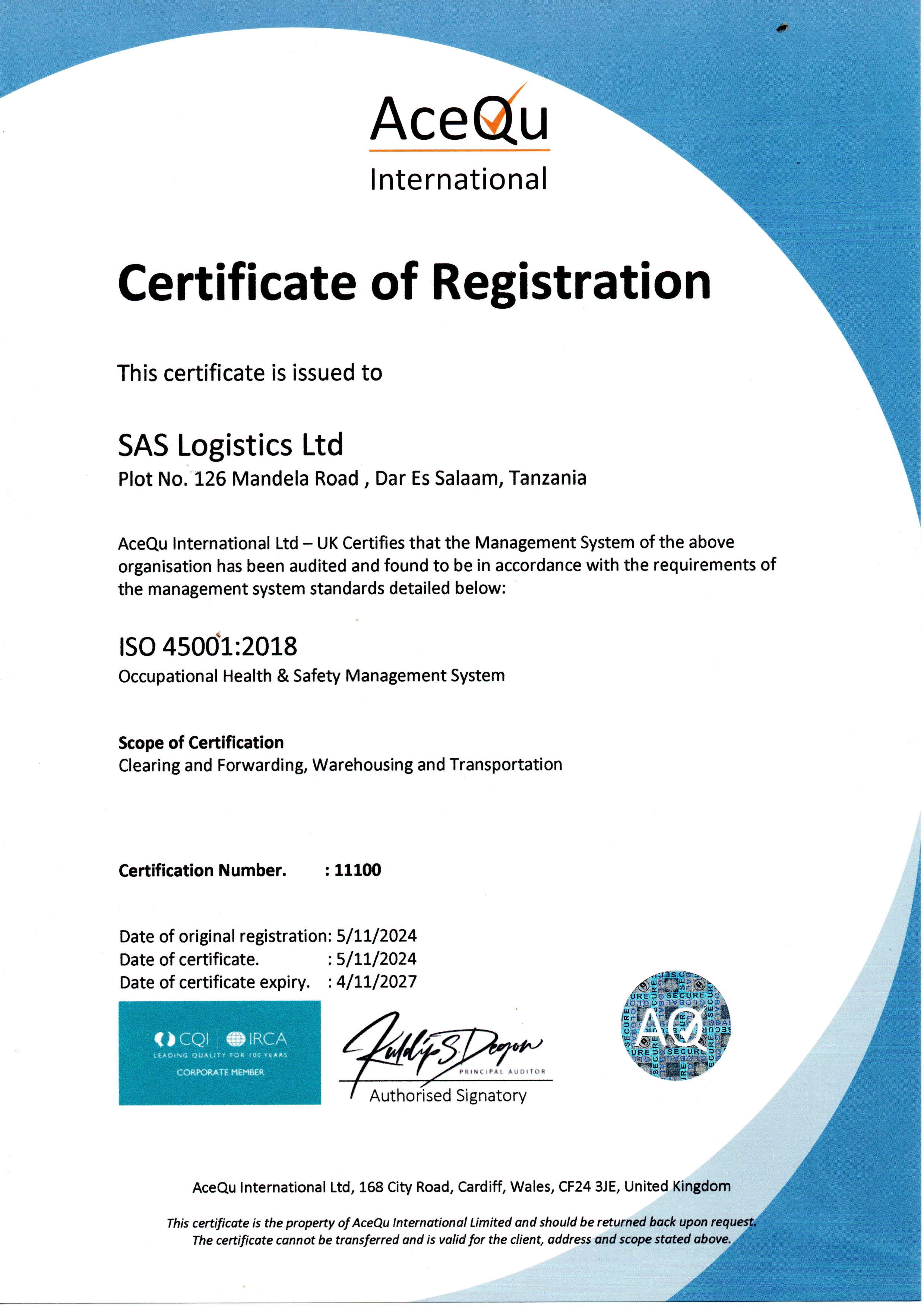 ISO 45001 certificate