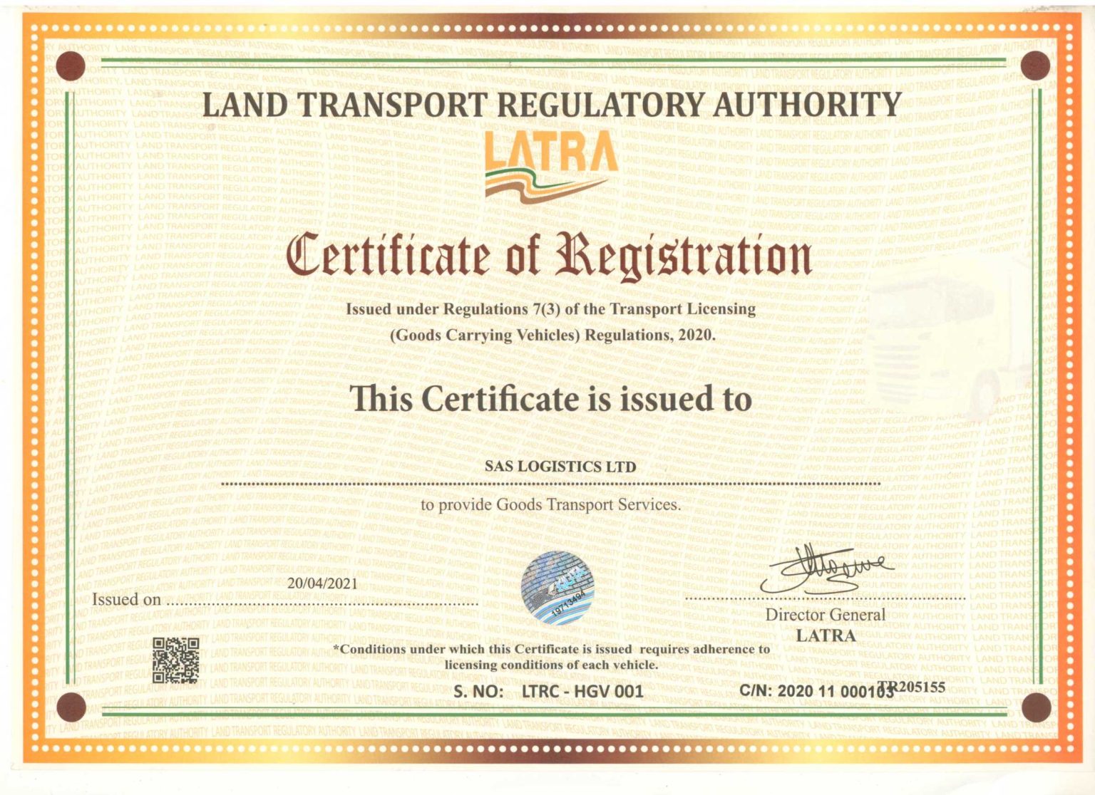 Latra Certificate of Registration